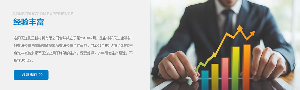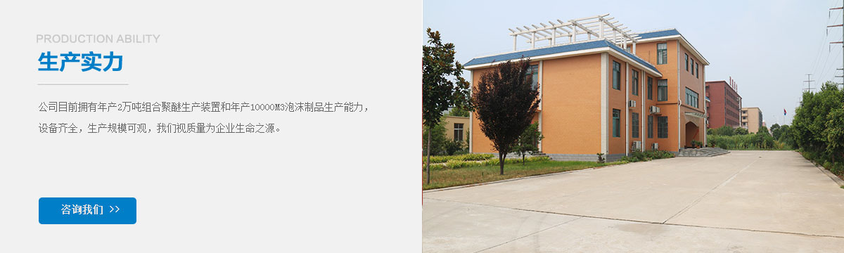 咨詢(xún)了解更多 >>洛陽(yáng)天江化工新材料有限公司成立于是2013年7月,是由洛陽(yáng)天江建筑材料有限公司與洛陽(yáng)凱欣聚氨酯有限公司合并而成,位于洛陽(yáng)市孟津縣白鶴鎮(zhèn)華陽(yáng)產(chǎn)業(yè)集聚區(qū)。本公司業(yè)生產(chǎn)系列聚氨酯組合料及系列聚氨酯制品。公司目前擁有年產(chǎn)2萬(wàn)噸組合聚醚生產(chǎn)裝置和年產(chǎn)10000m3泡沫制品生產(chǎn)能力。公司先后推出了城市集中供熱管道保溫組合聚醚、車(chē)庫(kù)門(mén)填充組合聚醚、冷庫(kù)及建筑節(jié)能?chē)娡拷M合聚酯、水發(fā)泡車(chē)用噴涂組合聚醚